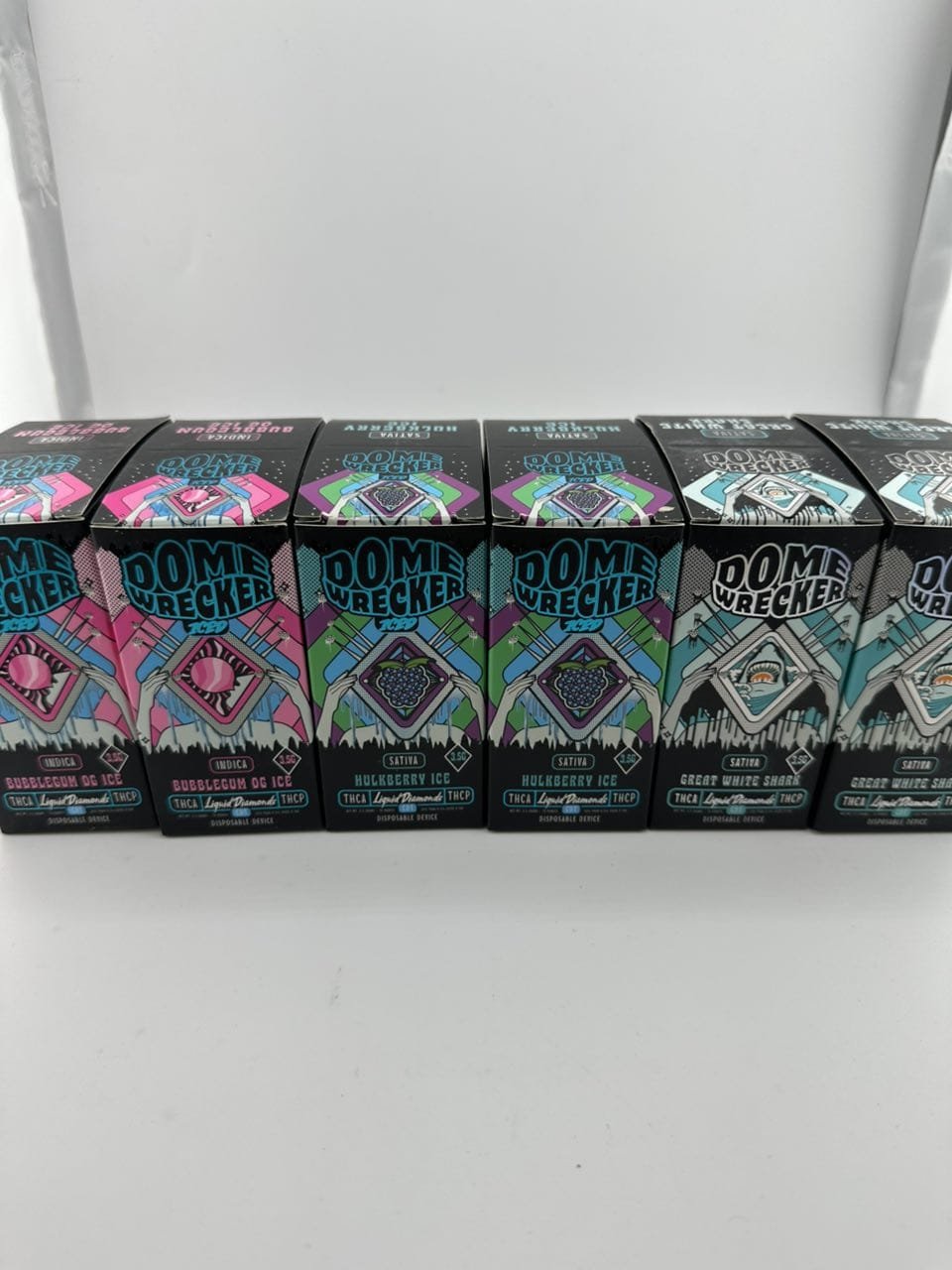 Dome Wrecker 3.5g disposables are sold through online hemp/cannabis vendors (e.g., delta8resellers.com, smokea.com, elementvape.com, d8gas.com, vaperanger.com, prohempsupply.com). Prices typically $25–$40 per unit (often $26–$30 on sale), with bulk deals lower. Not available in licensed dispensaries in most regulated markets—primarily hemp-derived gray-market.